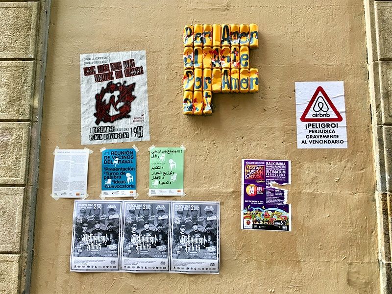 El Airbnb no es más que un ejemplo de esta situación. En agosto de 2018 muchos hombres y mujeres participaron en una manifestación en contra del turismo en el Parque Güell, famoso por haber sido diseñado por Antonio Gaudí; durante el evento mostraron una pancarta que rezaba “¡Estamos hartos del turismo masivo!”, y enfatizaron que el turismo en Barcelona “no es sostenible”. En 2017 se dieron numerosos casos en los que los activistas pincharon las ruedas de autobuses urbanos turísticos y bicicletas para uso de los turistas.