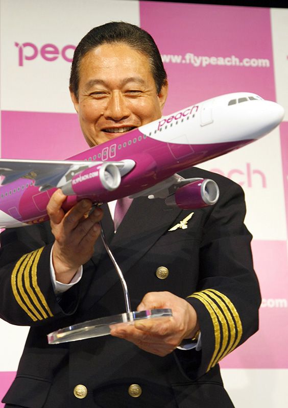 Previamente a la fundación de AirAsia Japan, ANA creó otra compañía de bajo coste, Peach Aviation, con el Aeropuerto Internacional de Kansai como centro de operaciones. Durante la rueda de presa en que se hizo público, el consejero delegado de la nueva compañía, Inoue Shin´ichi, procedente de ANA, posó para los fotógrafos en uniforme de piloto.