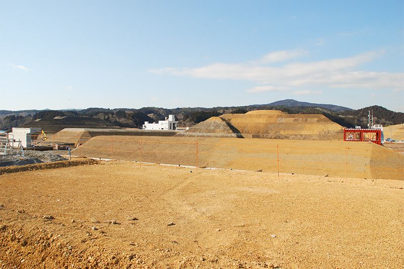 Acudí como reportero a Minamisanriku justo después del desastre del 11 de marzo de 2011 y otra vez en marzo de 2013, y puedo decir que hoy el lugar presenta un paisaje completamente diferente en el que se puede ver el progreso en las obras de reconstrucción de viviendas públicas en los terrenos en la falda de la montaña. La tierra extraída de esos terrenos durante la reconstrucción de esas casas ha sido llevada en volquetes a las zonas menos elevadas que fueron destruidas por el tsunami y con ella se están creando varios montículos piramidales de color marrón pálido aplanados en su parte superior.