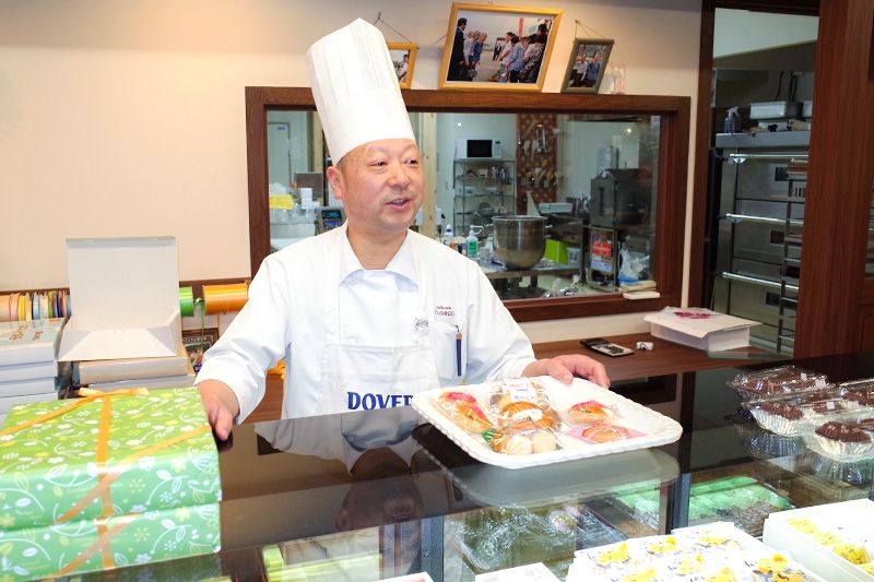 Abe Takekazu es el dueño actual de Yūshindō, un negocio fundado en 1910. En su nuevo escaparate hay una amplia variedad de dulces y de pan.