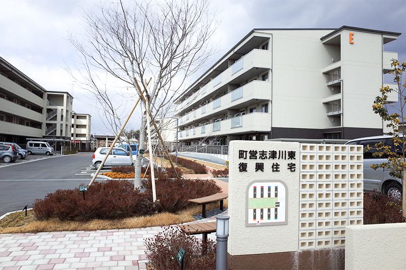 Bloques de viviendas gestionados por la municipalidad para los afectados por el desastre en el área de Shizugawa en Minamisanriku. La construcción de otras muchas viviendas ha terminado ya en esta ciudad, pero aún quedan muchas personas que continúan en viviendas provisionales.
