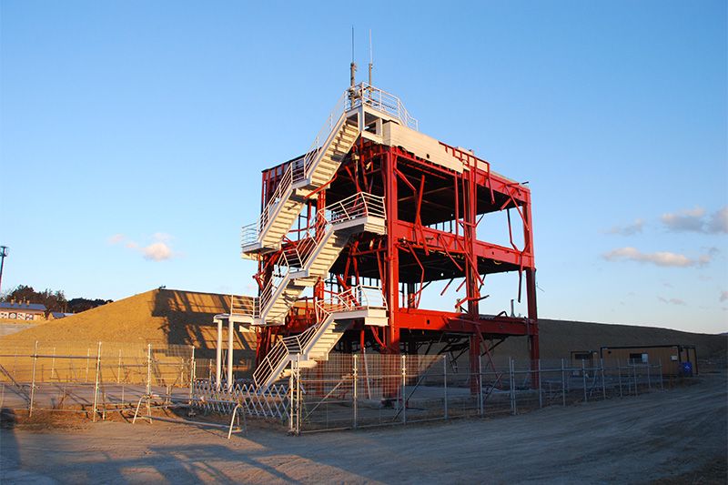 La estructura metálica de la oficina de prevención de desastres, donde muchas personas murieron el 11 de marzo de 2011. El paisaje de los alrededores ha cambiado considerablemente, pero esta estructura permanece como recordatorio del desastre.