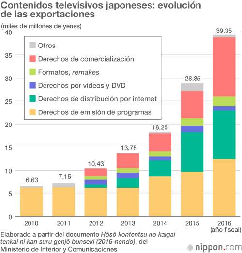 El número de viajeros extranjeros que visitaron Japón en 2016 ascendió a más de 24 millones de personas, el triple que los algo más de ocho millones que lo hicieron en 2010. Las causas de este rápido crecimiento debieron de ser muchas, pero entre ellas convendría incluir la mayor presencia internacional que están obteniendo los programas televisivos japoneses. La facturación por exportación de contenidos televisivos, que en 2010 fue de 6.630 millones de yenes, experimentó en años sucesivos un fuerte incremento y en 2016 alcanzaba ya los 39.350 millones. Es fácil imaginar que una buena parte de quienes visitan Japón lo hagan después de haber sentido interés por algún aspecto de la cultura o de la vida diaria japonesa tratado en dichos programas.