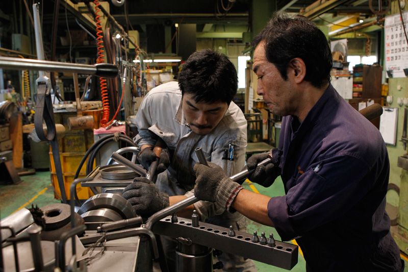 Una de estas empresas es Kitajima Shibori Seisakusho, uno de los talleres más cualificados del país en la gestión de metales mediante técnicas de repujado. Esta empresa se distingue por su capacidad de crear formas de alta precisión para su uso como piezas de aviones estadounidenses y satélites, o la punta cónica del cohete japonés H-II. Estos componentes no se fabrican con máquinas, sino que son modelados por las manos de artesanos cualificados.