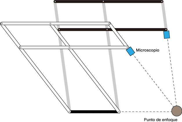 La forma de paralelogramo hace que el ángulo entre el microscopio y el objeto observado no cambie aunque el microscopio se mueva.