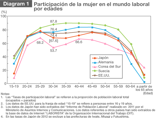 Japón ocupa el último puesto entre los países miembros del G8 en el Informe sobre Diferencias Globales de Género de 2012 presentado por el Foro Económico Mundial, y se ve relegado al puesto 101 de los 135 países incluídos en ese informe.