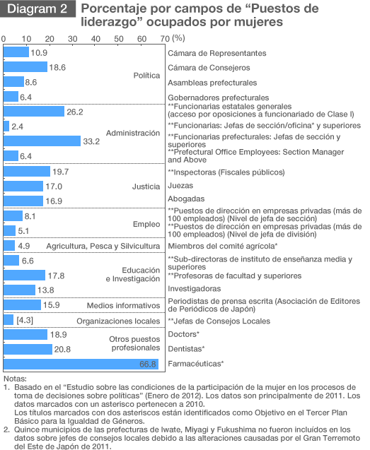 Fuente: "Informe sobre Igualdad de Género", Oficina de Igualdad de Género de 2012 del Gabinete