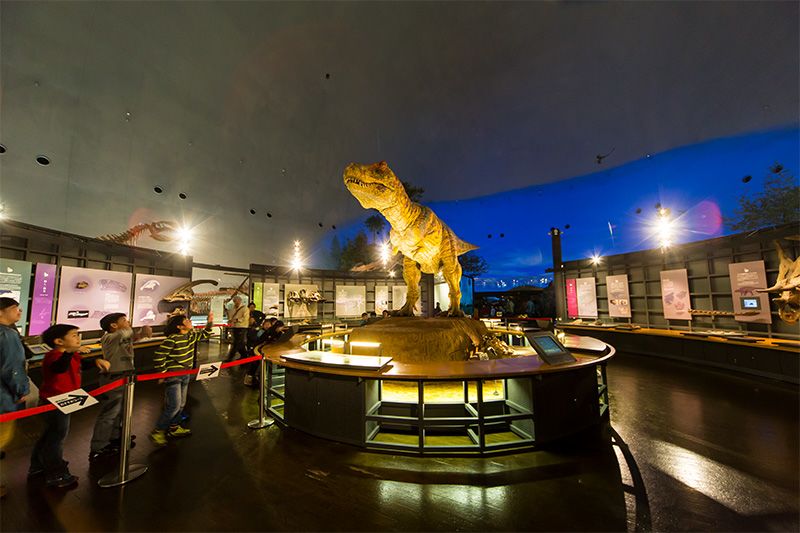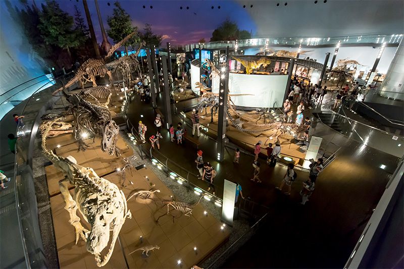 La sección Dinosaur World del museo cuenta con 44 esqueletos completos, colocados entre la pantalla de 200 pulgadas del cine Dino Theatre, una maqueta que presenta hallazgos de dinosaurios chinos y exposiciones de las criaturas de Japón y el resto de Asia.