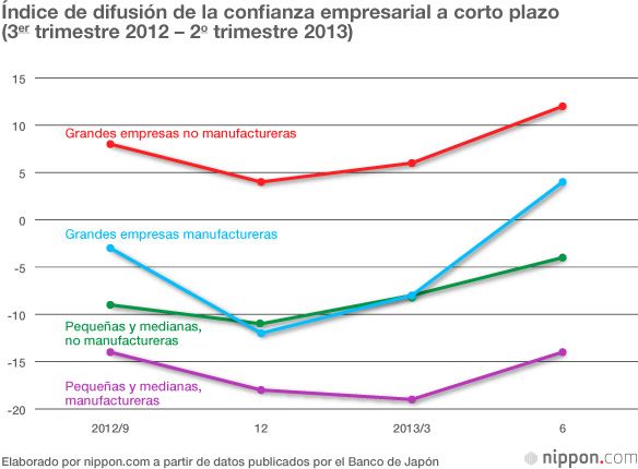 Sin embargo, incluso en el índice Tankan la recuperación de la confianza empresarial entre las pequeñas y medianas empresas es todavía escasa. La bajada del yen beneficia a las empresas exportadoras, pero la subida en los precios de los artículos de importación y de las materias primas tiene un efecto negativo sobre las pequeñas y medianas empresas y sobre las economías familiares, y algunos alertan ya sobre estos efectos secundarios. Todo indica que todavía será necesario algún tiempo hasta que la economía japonesa logre salir del largo ciclo deflaccionario en el que ha estado sumida y entrar definitivamente en un ciclo de recuperación.