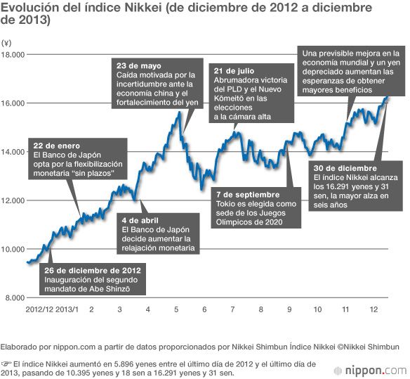 (Fotografía del encabezado: el primer ministro Abe Shinzō participa en una ceremonia en la bolsa de Tokio en la última sesión del año celebrada el 30 de diciembre de 2013. Cortesía de Tōyō Keizai/Aflo.)