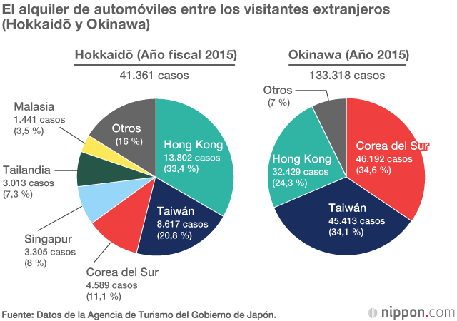 Datos del número de visitantes extranjeros de la Organización Nacional del Turismo del Gobierno de Japón. Datos del número de usuarios de vehículos de alquiler del Ministerio del Territorio, Infraestructuras, Transporte y Turismo.
