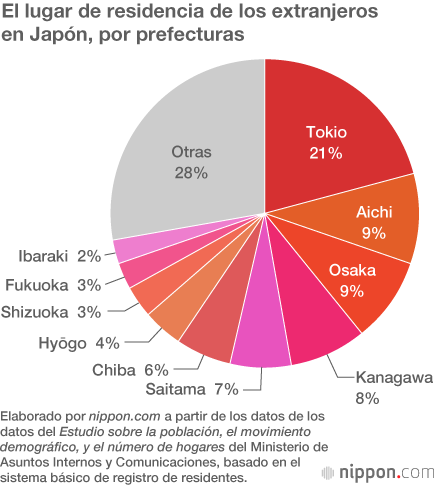 Las prefecturas con el menor número de residentes extranjeros fueron Akita con 3.760, Kōchi con 4.257 y Tottori con 4.329.