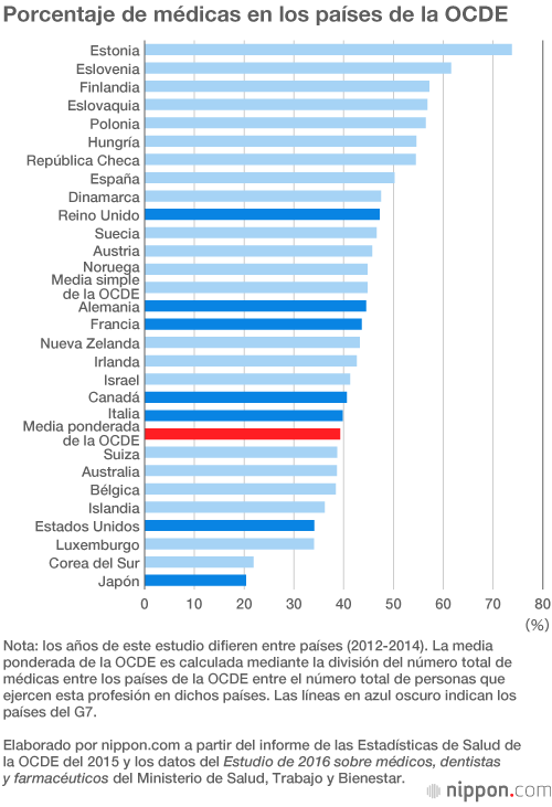 Japón es el país de la OCDE con menor porcentaje de médicas