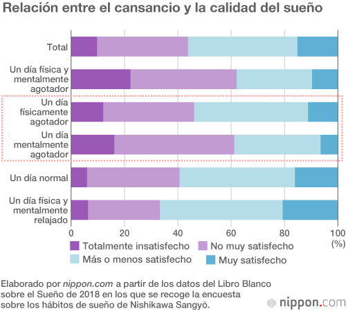 Cuando se les preguntó sobre la conexión entre su sensación de cansancio y la calidad del sueño (sueño profundo y despertar sintiéndose como nuevo), un 46,1 % respondió que después de un día físicamente agotador, se sentían o bien poco satisfechos o completamente insatisfechos con la cantidad de horas de sueño. Este porcentaje alcanzó el 61,1 % entre aquellos que habían tenido un día mentalmente agotador, lo que indica que la fatiga mental tiene efectos más negativos sobre el sueño.