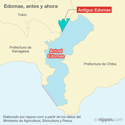 En Tokio existen numerosos locales de sushi y tempura cuyos platos cuentan con la palabra “Edomae”. En esencia, la palabra “Edomae” indicaba el mar que se encontraba justo frente al castillo de Edo, cuyos cimientos hoy están en los terrenos del Palacio Imperial. En concreto, se trata de las aguas que quedan dentro de la línea que conecta Haneda con la desembocadura del antiguo río Edo (en la actualidad, la parte este de Tokyo Disney Resort). En la antigüedad las aguas de la bahía llegaban hasta las inmediaciones del castillo de Edo, lo que permitía llevar el pescado recién capturado en esas aguas a la mesa de la familia del shogún y los samuráis.