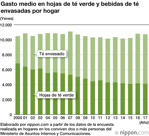 Una encuesta realizada en hogares en los que conviven dos o más personas reveló que el gasto medio anual en hojas de té verde y bebidas de té, incluyendo el té verde y el de cebada en botellas de plástico y otros envases, se mantuvo estable desde el 2000 en más de 10.000 yenes. Es obvio que el té continúa siendo una bebida indispensable para los japoneses.
