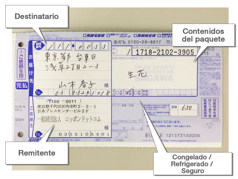 Los servicios de mensajería de Japón permiten enviar desde cualquier lugar con tan sólo una llamada numerosos objetos como comida y objetos frágiles, electrodomésticos como ordenadores y otros aparatos, maletas para un viaje y souvenirs, flores y hasta pescado fresco, ect. A todo el terriorio nacional, e incluso a más de 200 lugares en todo el mundo.