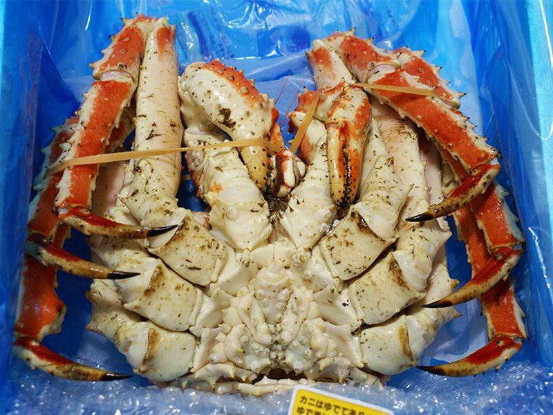 Un cangrejo rojo gigante de Hokkaidō enviado a través del servicio de mensajería.