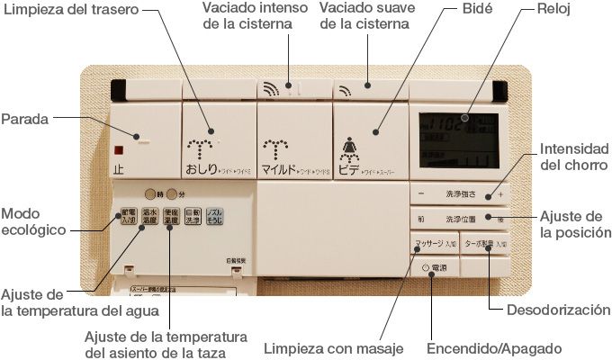 Un panel de mandos de un retrete inteligente (LIXIL).