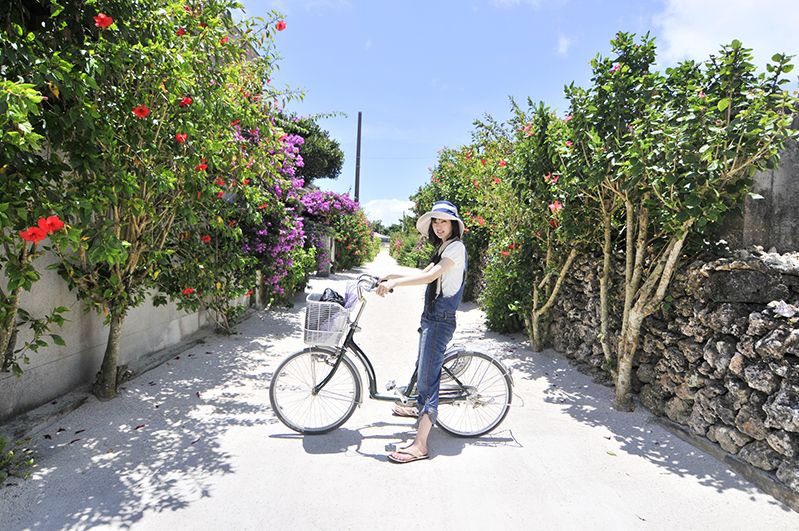 Algunos destinos turísticos de Japón como Kioto y Kamakura con sus numerosas callejuelas antiguas, como las pequeñas islas de Okinawa y Shikoku, los santuarios de Kumano o los centros turísticos de Karuizawa, o incluso las sendas montañosas de Okutama, cuentan con un servicio de alquiler de bicicletas para los turistas. Hacer turismo en bicicleta tiene sus ventajas. El usuario puede parar en cualquier momento para comprar algo en la tienda de 24 horas o en el supermercado, y dirigirse después al próximo punto turístico sin perder el tiempo, pedaleando y disfrutando del aire libre, y pudiendo hacer una ruta particular.