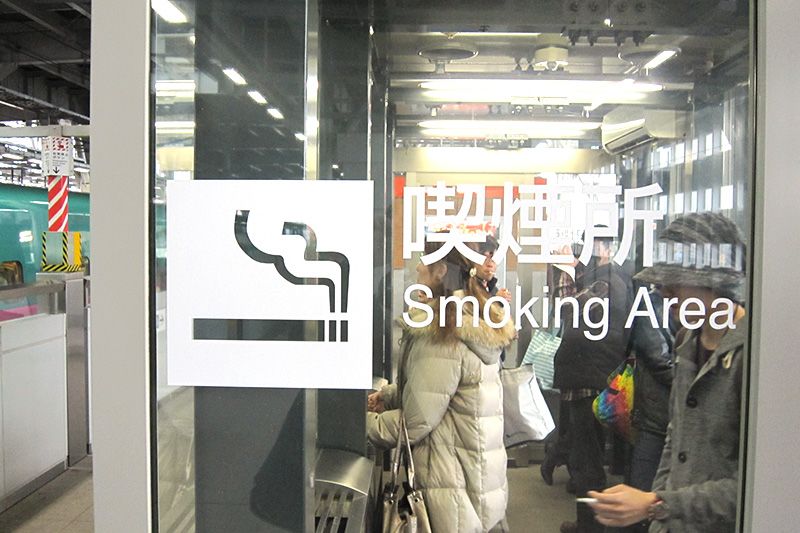 Zona de fumadores en la plataforma de la estación de Shin Aomori (prefectura de Aomori)