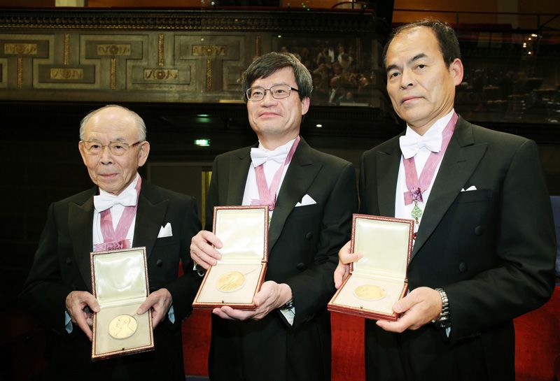 En la ceremonia de los premios Nobel en Estocolmo, el rey Carl XVI Gustaf de Suecia entrega las medallas y los diplomas a los ganadores del Nobel de Física: el profesor Akasaki Isamu de la Universidad Meijō, el profesor Amano Hiroshi de la Universidad de Nagoya y el profesor Nakamura Shūji de la Universidad de California, Santa Barbara. El galardón fue concedido por la invención de los diodos de luz azul eficientes. Este premio llega dos años después de que se le concediese el premio Nobel de Fisiología y Medicina al profesor de la Universidad de Kioto Yamanaka Shin’ya, siendo ya 22 los japoneses galardonados con el Nobel en todos los campos.