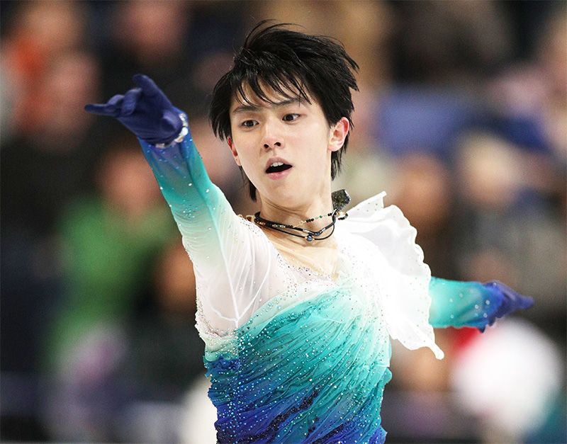 Hanyū Yuzuru durante su actuación en la categoría masculina de patinaje libre, el 1 de abril en Helsinki, Finlandia. (Jiji)