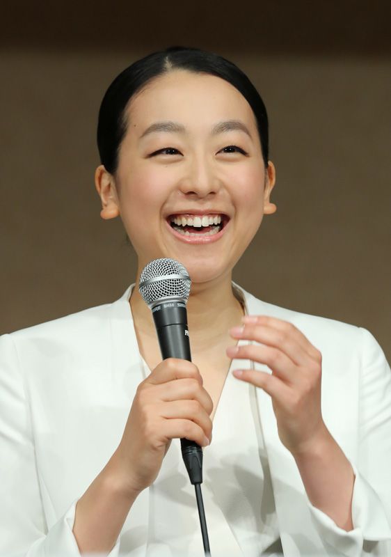 La patinadora artística Asada Mao habla en una rueda de prensa el 12 de abril en Tokio después de anunciar su retirada. (© Jiji)