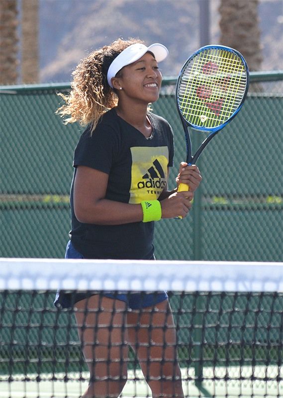 Ōsaka Naomi se relaja mientras practica en el Indian Wells en California el 17 de marzo de 2018, un día antes de la final del Open BNP Paribas. (© Jiji)