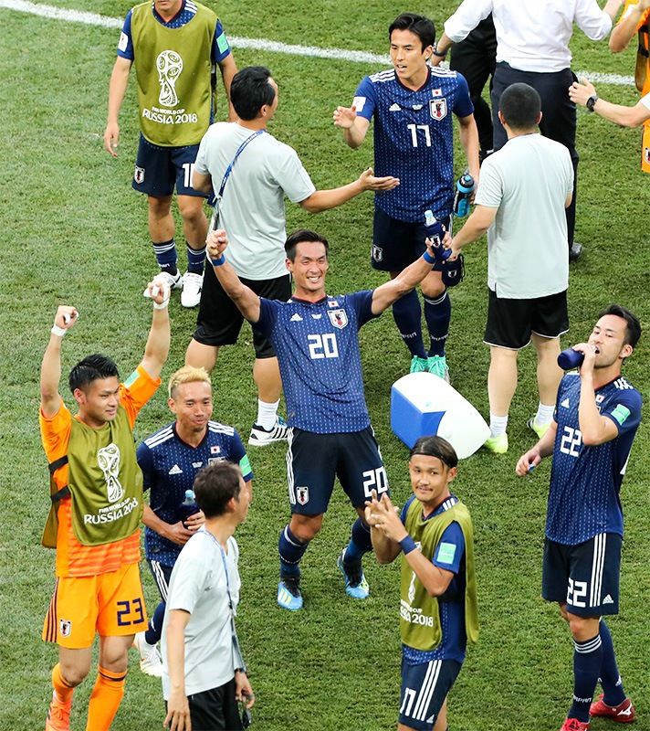 A pesar de perder por 1-0 contra Polonia en el último partido del Grupo H, Japón pasa a octavos de final en la Copa Mundial de Rusia de 2018. Japón venció a Colombia por 2-1 el 19 de junio y empató con Senegal por 2-2 el 24 de junio.
