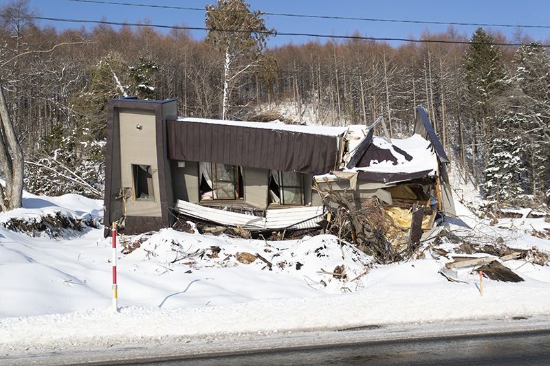 Una casa afectada por un deslave provocado por el terremoto en Atsuma, Hokkaidō. Fotografía tomada el 22 de febrero de 2019. (© Jiji)