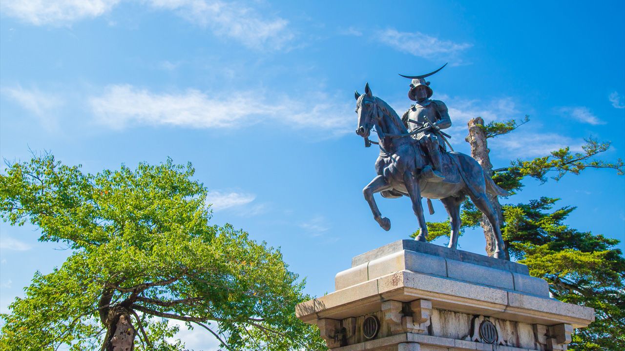 Imagen del encabezado: estatua ecuestre de Date Masamune. (PIXTA)