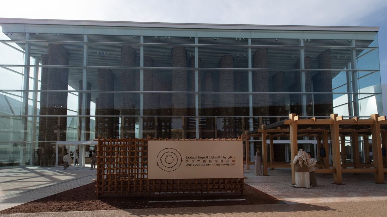 Este pabellón de cristal está lleno de columnas de árboles gigantes formadas a partir de residuos agrícolas. La palmera datilera, enraizada en la tierra y que se eleva hacia el cielo, simboliza el carácter nacional de los Emiratos Árabes Unidos.