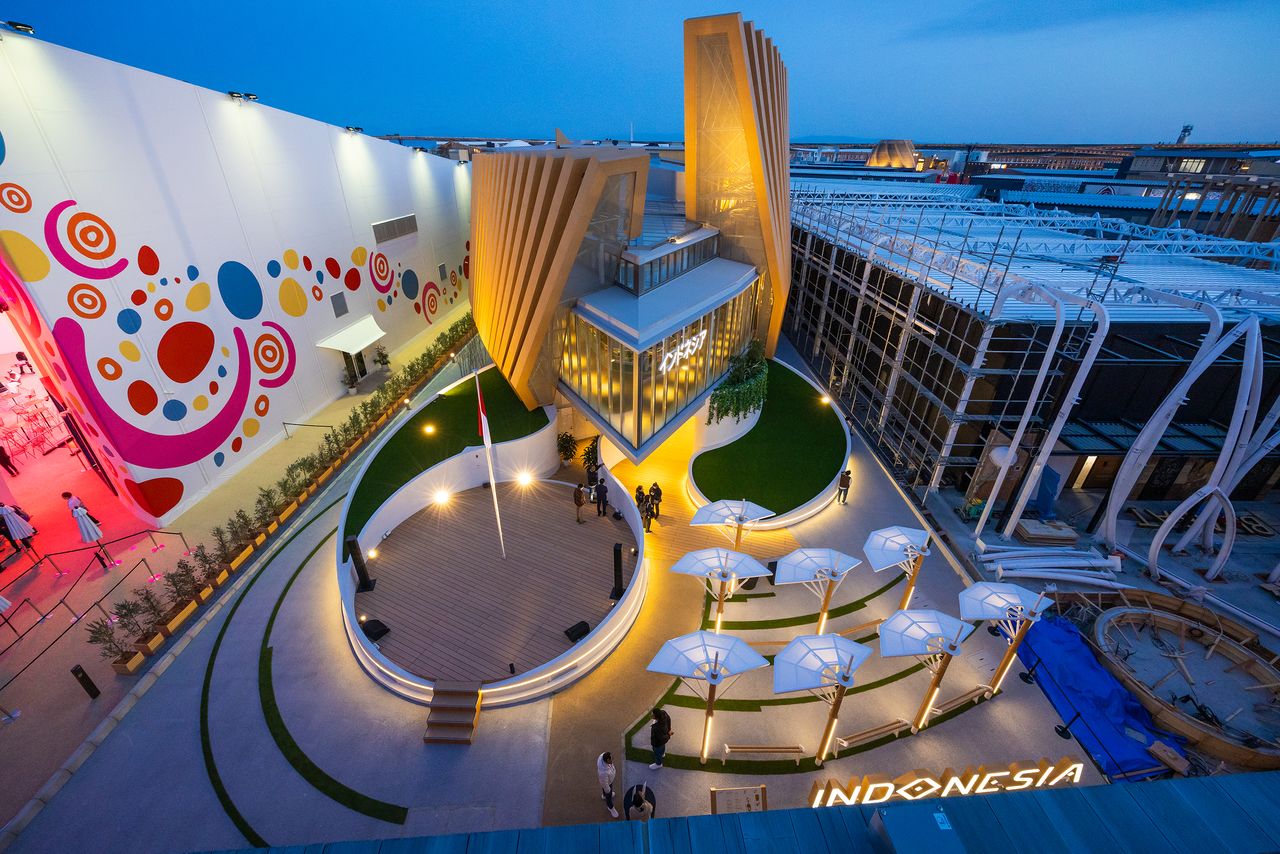 El exterior de este pabellón representa un barco, un símbolo importante para Indonesia, país que, al contar con más de 17.000 islas, es el mayor archipiélago del mundo. Este diseño refleja la visión de llevar adelante el sueño del pueblo indonesio de convertirse en una nación avanzada para el año 2045.