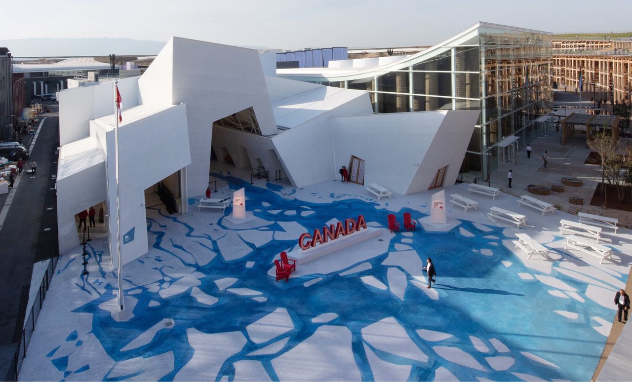 El tema de este pabellón es la “regeneración”. El azul y el blanco del exterior representan la descongelación de un río helado al comienzo de la primavera. Los visitantes son invitados a pasear junto al río mientras observan la vida local y experimentan la calidez y positividad de Canadá a través de la realidad aumentada en una tableta especial.