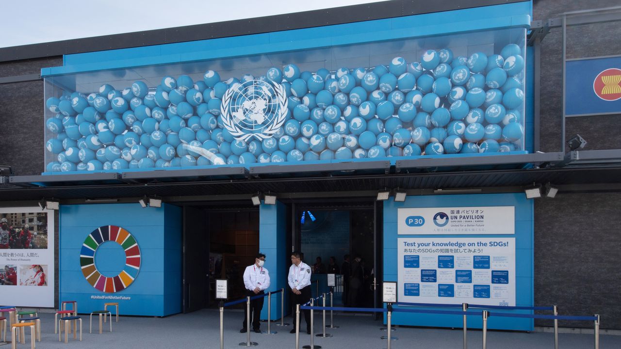Las agencias y secretarías de las Naciones Unidas exhiben su trabajo bajo el lema “Unidos para un futuro mejor”. Dentro del pabellón se presentan los 80 años de historia de la organización y su trabajo para hacer frente a cuestiones globales y crisis humanitarias. Los visitantes pueden aprender de qué manera el trabajo internacional se refleja en la vida diaria y reflexionar sobre cómo crear un futuro sostenible.