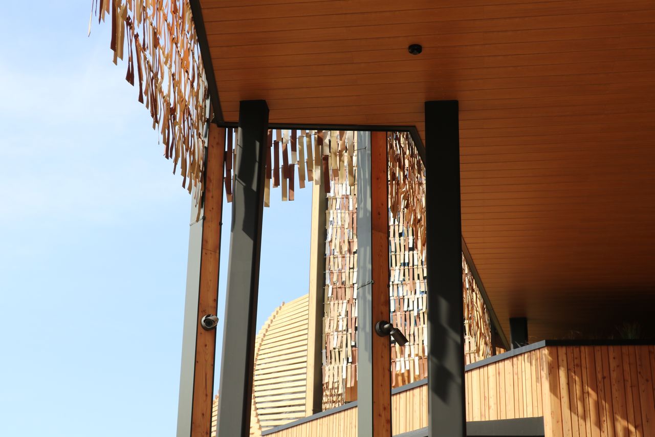 Este pabellón, situado en un amplio espacio verde que recuerda a gran llanura húngara, causa impresión a primera vista. El edificio cuenta con más de 30.000 tiras finas que bailan en la brisa como las hojas de los árboles.