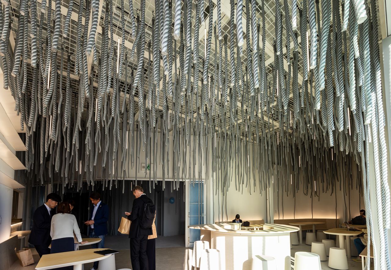 El tema de este pabellón es “Océano, el diálogo azul”. Diseñado por el mundialmente aclamado arquitecto japonés Kuma Kengo, tanto el interior como el exterior de las instalaciones presentan numerosas cuerdas colgantes que expresan los colores y las olas del mar.