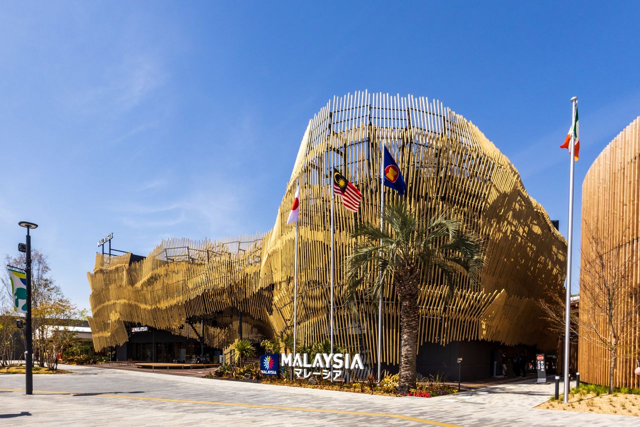 Para estas instalaciones el arquitecto Kuma Kengo creó un diseño basado en los tejidos songket de intricados patrones de Malasia. El exterior del pabellón cuenta con 5.000 plantas japonesas de bambú, y el interior con 500 de Malasia, con lo que se recrea un exquisito bosque de bambú. Cuando se ilumina por la noche, los patrones de las cintas exteriores producen una resplandeciente ilusión de hilos dorados y plateados.