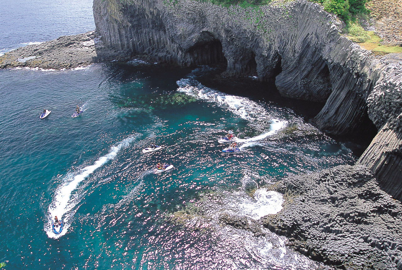 La mayor de todas las cuevas mide tres metros de ancho y se extiende a lo largo de 110 metros. Los turistas que deseen verlas de cerca pueden subir al Ika Maru, un barco turístico con una decoración que recuerda a los calamares. Desde la cubierta del bote los pasajeros pueden ver dónde se han fracturado las rocas de basalto formando columnas.