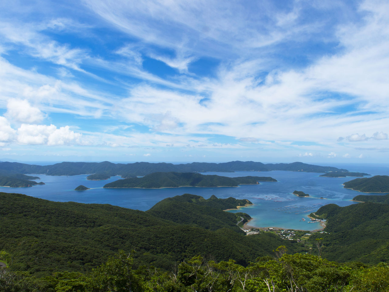 El estrecho de Ōshima en la costa de las rías desde el mirador de Kōchiyama.