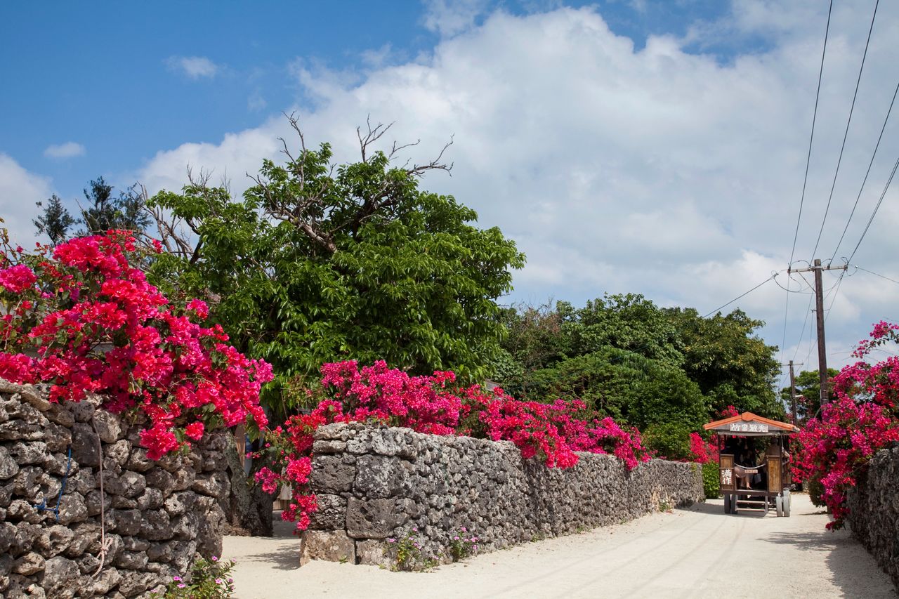 El pueblo de la isla de Taketomi, donde la cultura de Ryūkyū está fuertemente arraigada, está designado como un importante distrito de preservación de edificios tradicionales del país. ©OCVB