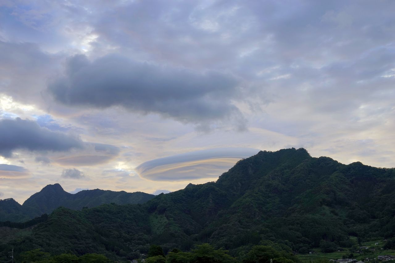 Las montañas de Takachiho y la nube lenticular. Fotografía: Ōsaka Hiroshi.