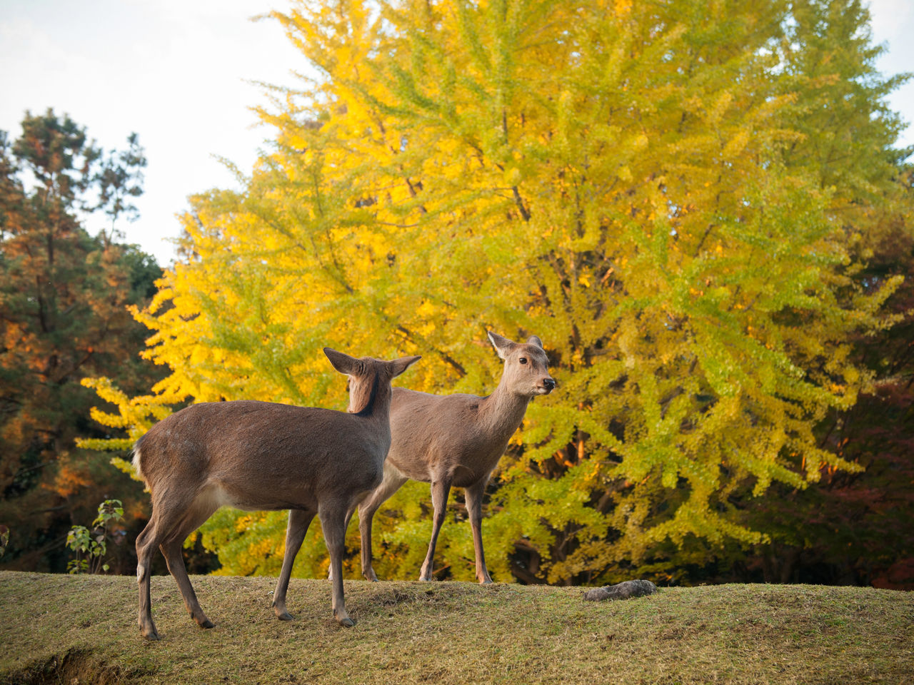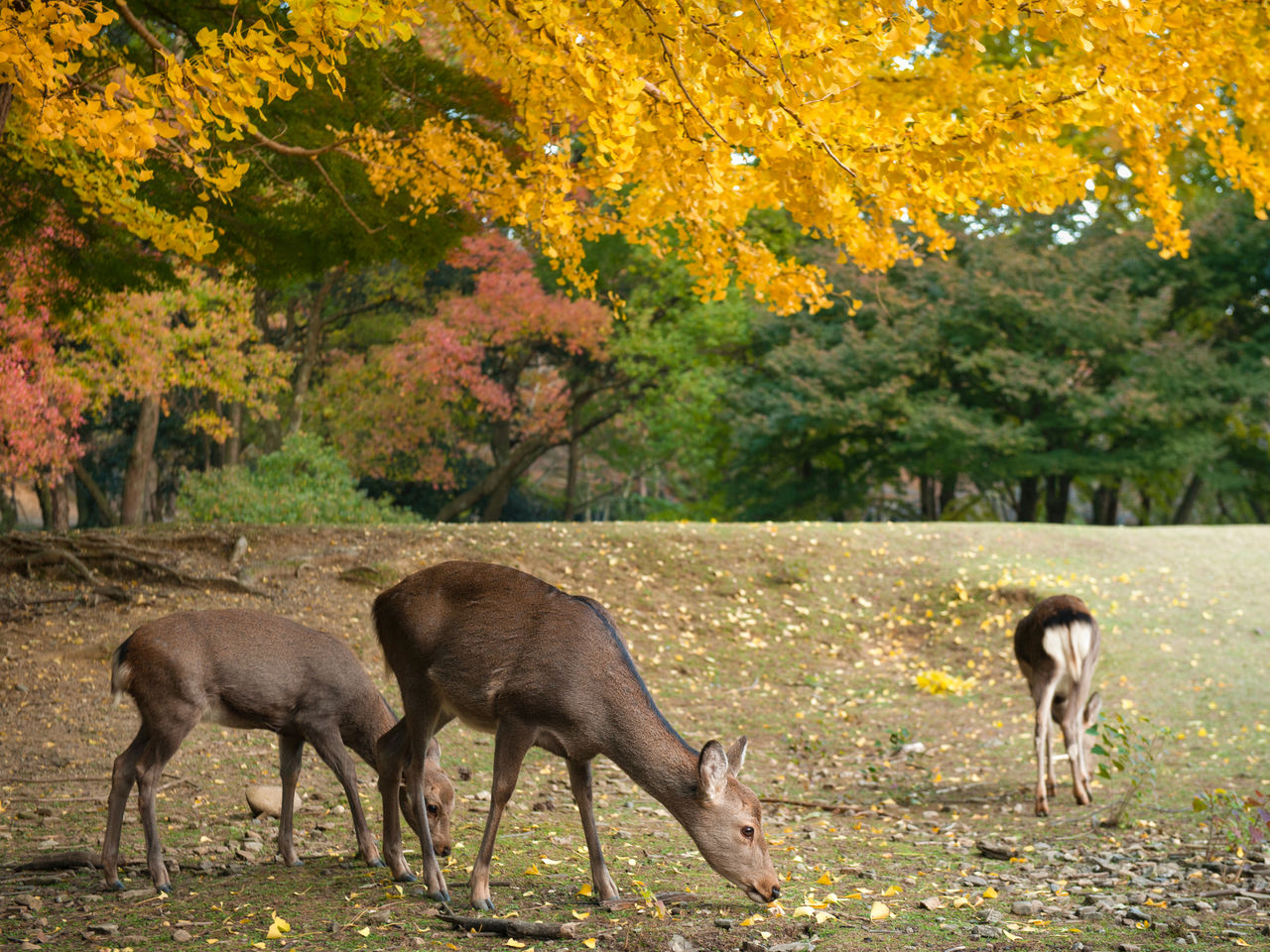 (Fotografía del encabezado: los ciervos del parque de Nara rodeados de follaje otoñal en el atardecer)