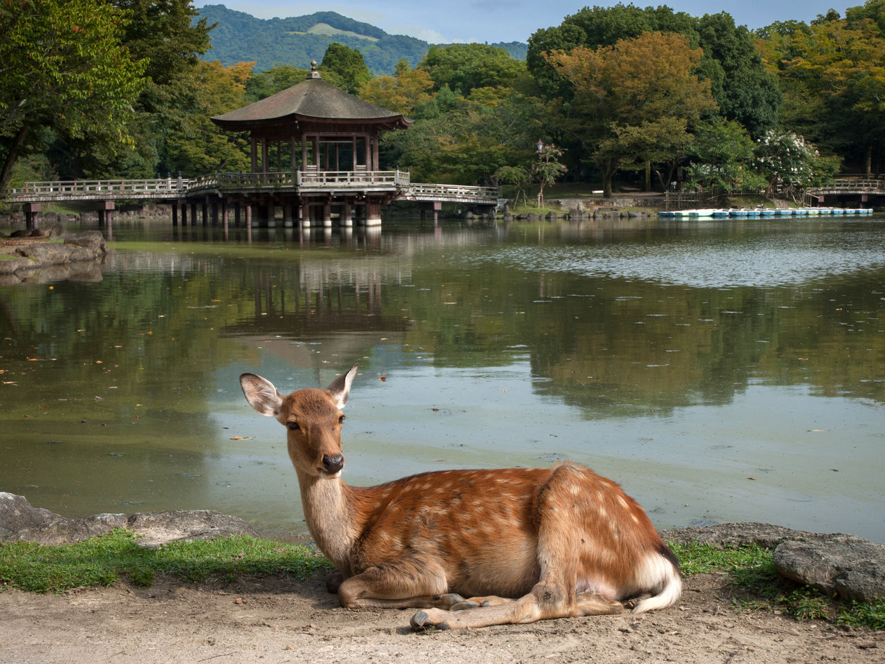 El símbolo del parque de Nara son los ciervos que se pasean libremente por todos sus rincones. Desde la antigüedad, estos animales han sido considerados enviados de los dioses del gran santuario de Kasuga, además de que han sido designados como monumentos naturales de Japón. Los cerca de 1.200 ciervos que lo habitan son parte de la exuberante naturaleza del parque de Nara, cuyo ejemplo más elocuente es el bosque virgen del monte Kasuga (Kasuga-okuyama), que, además, es patrimonio de la humanidad.