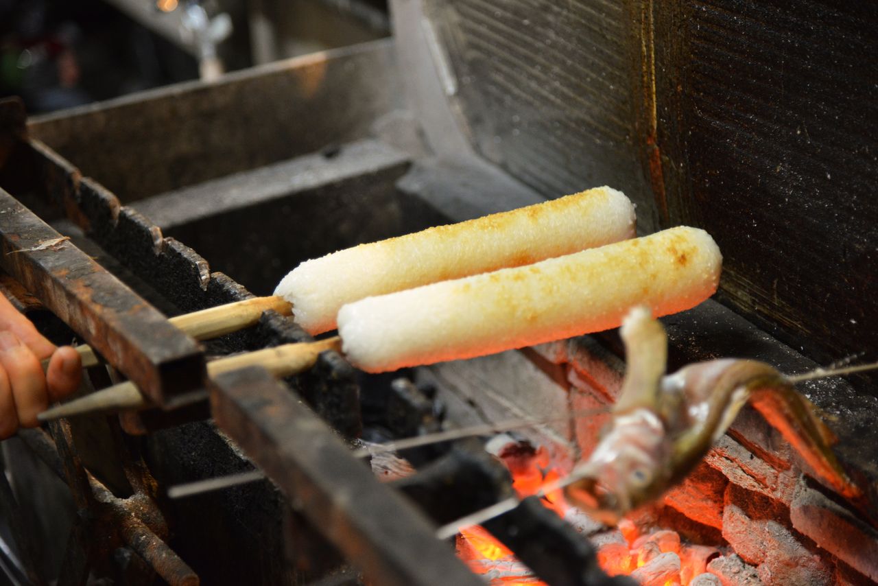 En el restaurante Kuidokoro Hokushū, los kiritanpo que utilizan para el plato a la cazuela los preparan cuando reciben la comanda. Cada brocheta se elabora lentamente a la brasa; emplean hasta dos cuencos de arroz por unidad. Luego, estos cilindros de textura elástica se deshacen en la boca tras haberse empapado en la deliciosa sopa de la olla. Es casi imposible resistirse a esa sensación en la boca.