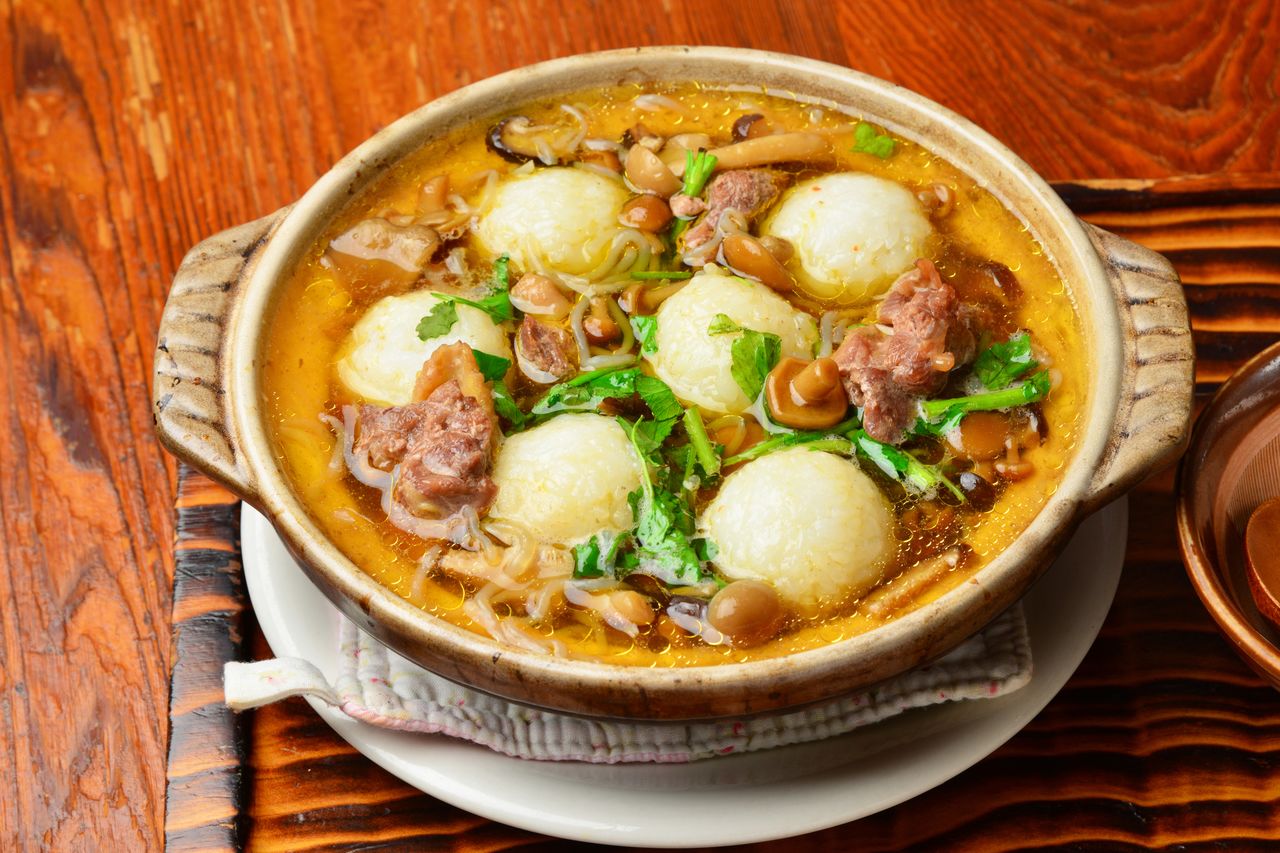 En el restaurante Chawan’ya, les dan un toque especial a las bolas damakko poniéndoles surimi de gamba o camarón. Es imposible resistirse al sabor de la sopa de pollo de Hinai con tintes de marisco, una combinación perfecta. El caldo lleva varios tipos de setas, de ahí que tenga una textura ligeramente espesa; sirve para calentar todo el cuerpo. Recomendamos acompañar el damakko nabe de uno de los muchos sakes de producción local disponibles en carta.