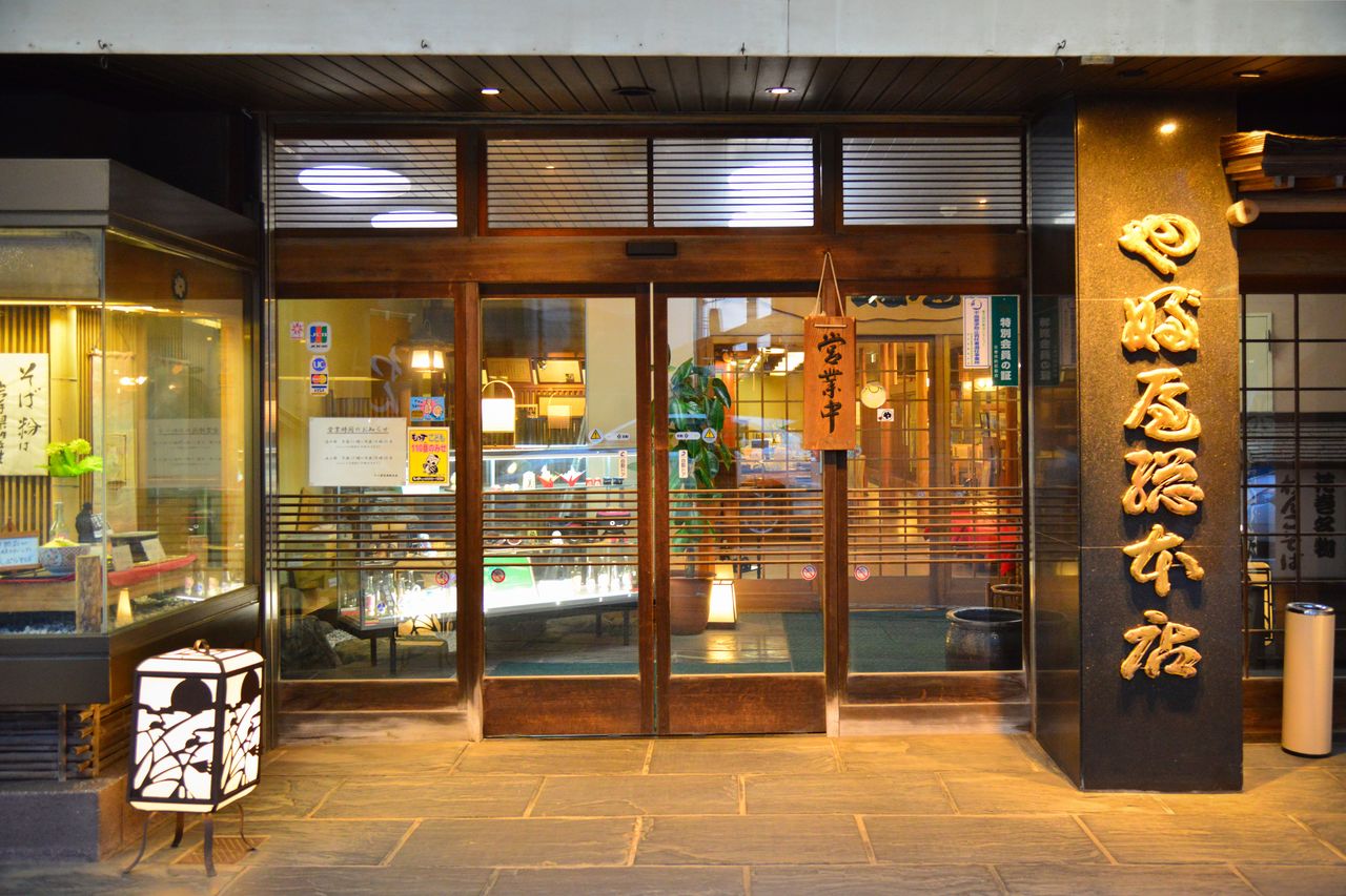 La entrada del restaurante Yabuya Sōhonten, de aspecto imponente y macizo, refleja la larga historia del establecimiento.