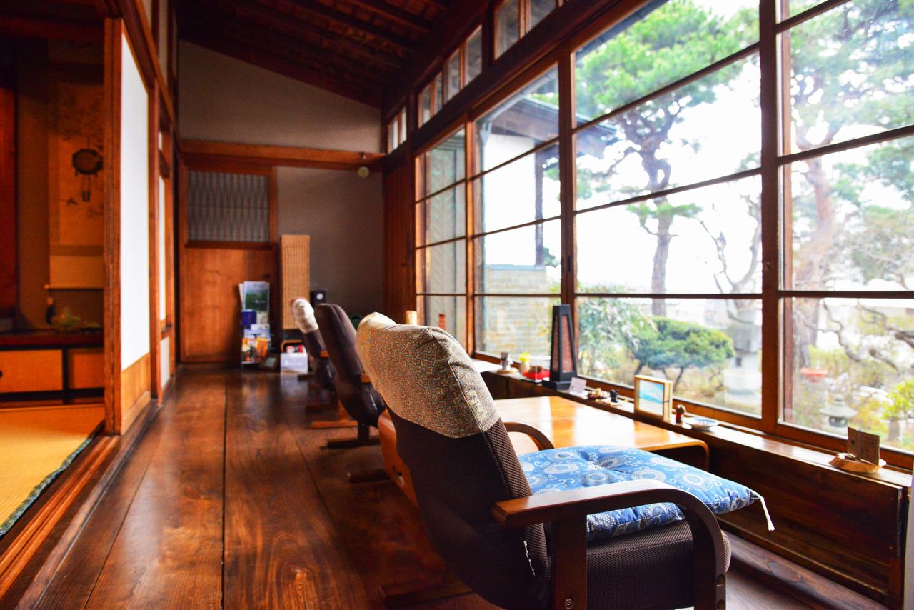 Desde estos asientos, que dan a la ventana, es posible contemplar el precioso jardín japonés de la residencia.
