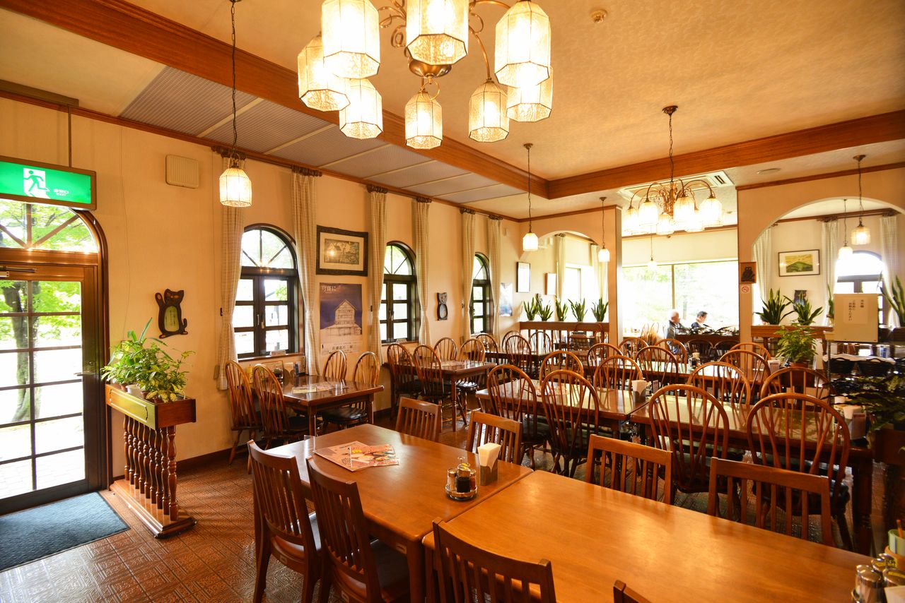 El amplio interior del restaurante, con mesas y sillas de estilo clásico.